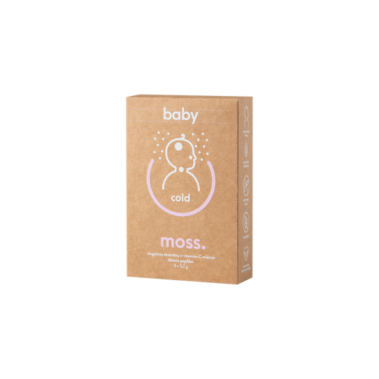 - ColdMoss Baby – augaliniais ektraktais ir vitaminais praturtinti milteliai šiltajam gėrimui pasigaminti.