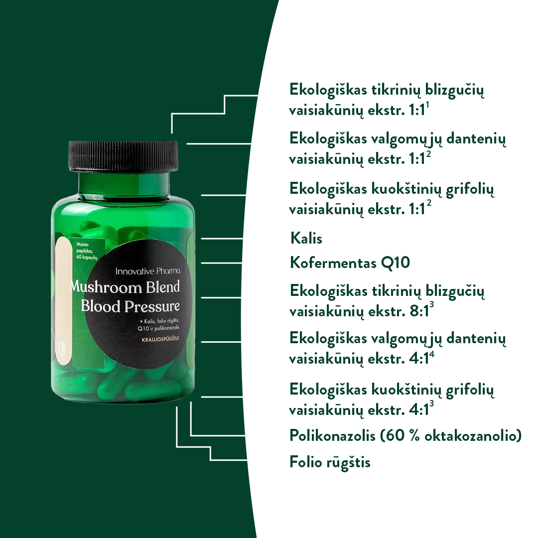 Funkcinių grybų mišinys KRAUJOSPŪDŽIUI (60 kaps.)